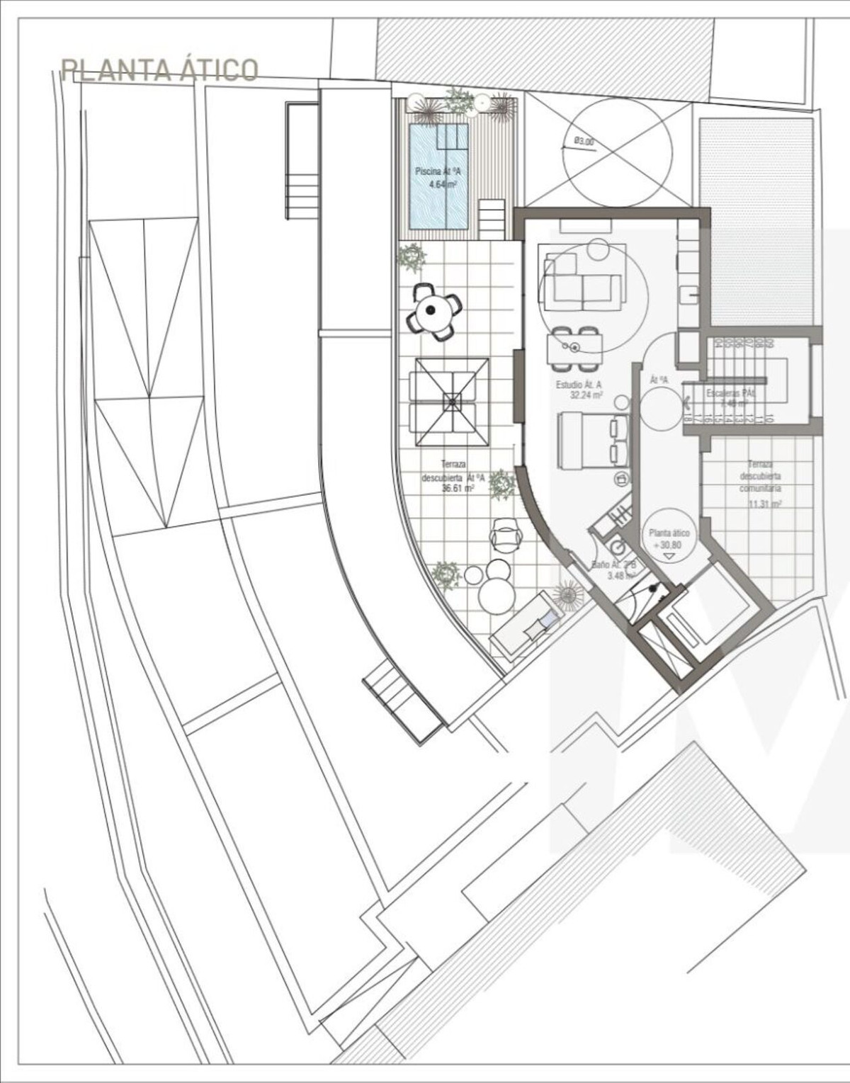 Premium features: The preliminary residential study includes the possibility of designing units with terraces and a swimming pool on the penthouse floor,