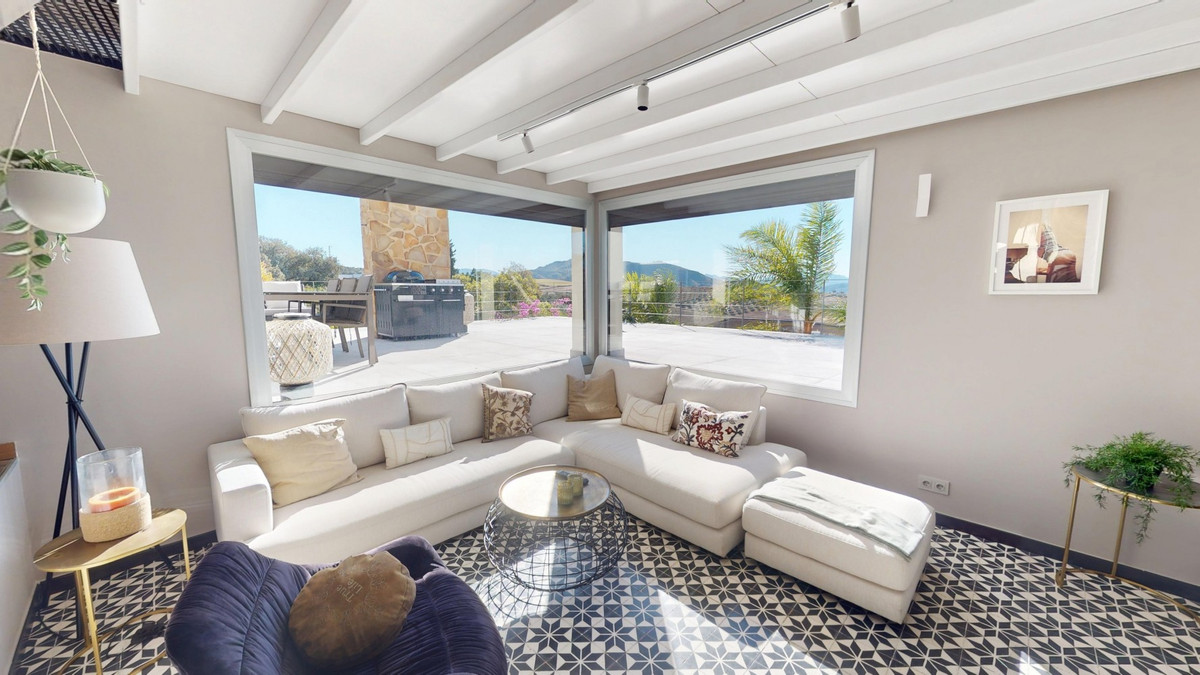 Exclusive Estate with Guest Apartment and Equestrian Facilities in Álora This exceptional estate in Álora combines generous living spaces, absolute privacy, and a privileged natural setting ideal for those seeking comfort, tranquillity, and versatile usage possibilities at a high level. Surrounded by breathtaking scenery, this property offers a truly unique lifestyle in the heart of Andalusia. The main residence impresses with its spacious layout and abundant natural light. It features a large open-plan living and dining area with kitchen, forming the heart of the home, as well as a second living room on a bright mezzanine level, ideal as a lounge or private retreat. The house offers three bedrooms, two full bathrooms, and a guest toilet. The master suite includes an en-suite bathroom and a walk-in dressing room, ensuring maximum comfort and privacy. From the kitchen, you step out onto a generous terrace with stunning mountain views, perfect for a chill-out area or an elegant outdoor dining and BBQ space surrounded by nature. Outside, the property features a separate guest apartment with a full bathroom, ideal for visitors, family members, or staff. A swimming pool, harmoniously integrated into the surroundings, completes the outdoor area. Beneath the main house lies a large area with multiple potential uses, which can be customized according to the future owners needs such as a gym, studio, workshop, or leisure space. In addition, there is a garage that could easily be converted into another guest apartment with spectacular views by adding windows. One of the standout features of this estate is the extensive plot, offering complete privacy and excellent conditions for horse keeping. The property includes a riding arena, stables, ample space for paddock grazing, and holds an official license for up to five horses a rare opportunity for equestrian enthusiasts and nature lovers alike. This is far more than a home it is a lifestyle concept, where freedom, nature, and exclusive living come together in perfect balance. We would be delighted to present this remarkable property to you, either in person or via virtual viewing. Because this world is unique just like our Axarquía. In Andalusia. On the Costa del Sol. Here, on the sunny side of life.