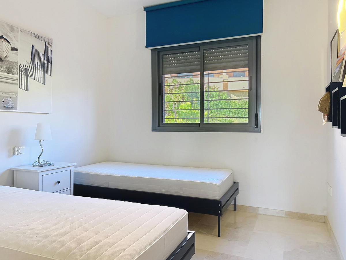 The apartment features a fully equipped kitchen, reversible air conditioning, and a beautiful terrace of approximately 20 m² with stunning views of the sea and the Rock of Gibraltar.