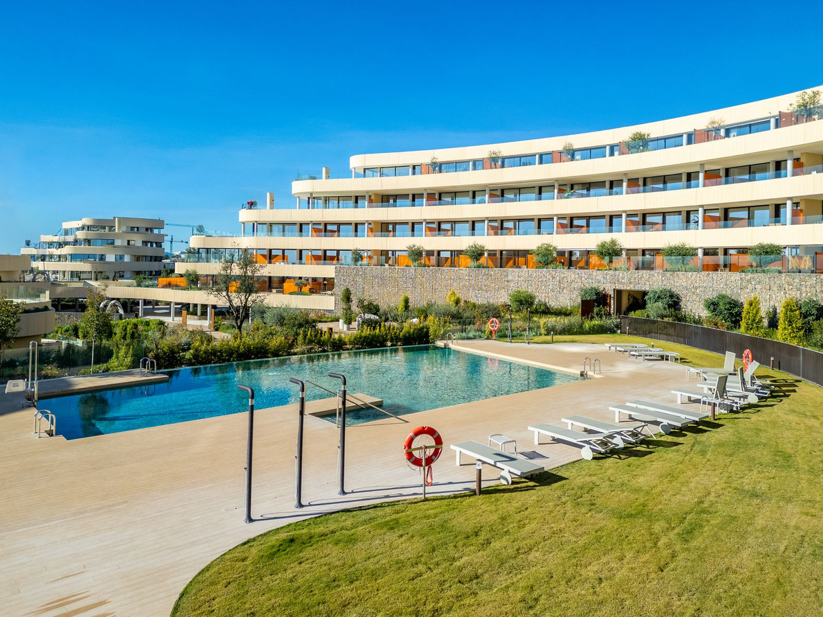 Main bedroom with ensuite bathroom and walk-in closet. This apartment is distinguished by the ingenious movable wall that connects the master bedroom-suite to the living room. This elongated sliding door is designed to duplicate the entrance of natural light and enjoying much better views. This easy interaction between the living spaces creates a flexible open area that is designed for you to enjoy the climate and lifestyle of Southern Spain. This clever design not only maximises the natural light of the Costa del Sol in both rooms, but also allows you to admire the splendid views from every corner of your home. Air conditioning hot and cold, video intercom, domotic system, pre-installation alarm system, water filter system, under floor heating in both bedrooms and bathrooms. Includes two parking spaces (one with electric car charger) and one storage room.