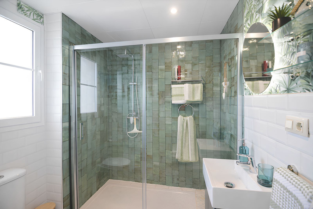 It features a spacious living room with direct access to a beautiful terrace, from which uninterrupted views of the golf course can be enjoyed, ideal for relaxing and making the most of the Costa del Sol climate.