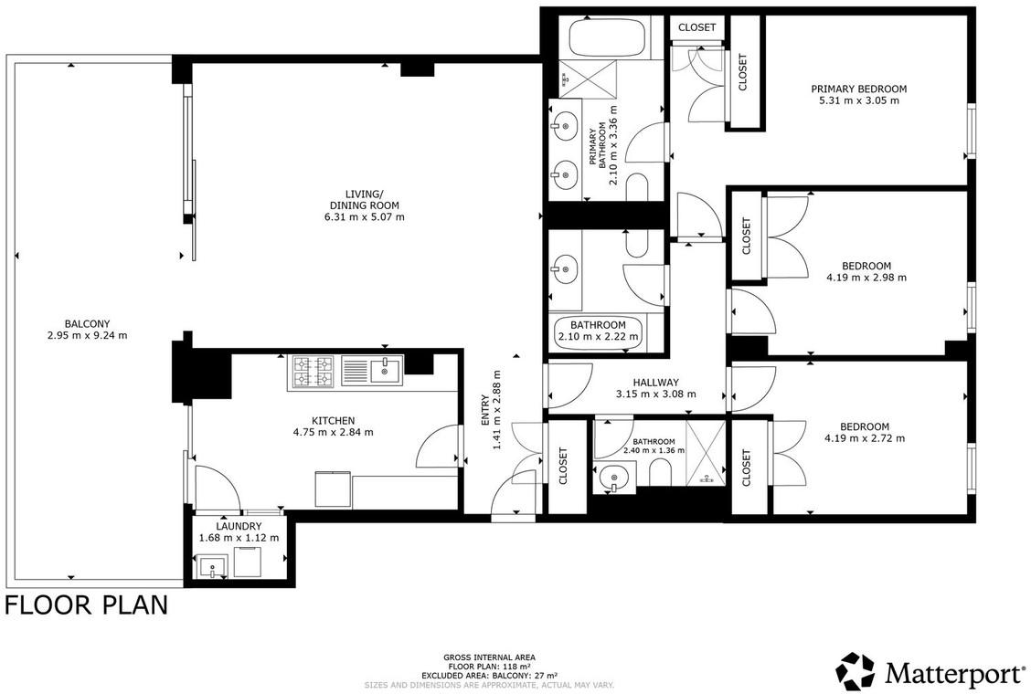* Floor-to-ceiling windows with double glazing