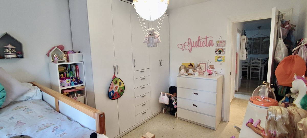 The property is located on the second floor of a building with a lift and has a floor area of 107 m², distributed over a master bedroom, two secondary bedrooms, a full bathroom (with the possibility of adding a second bathroom), a fully fitted and equipped separate kitchen with utility room, and a spacious living-dining room of approximately 25 m² with direct access to a pleasant 8 m² terrace, facing east and with unobstructed views of the communal areas.