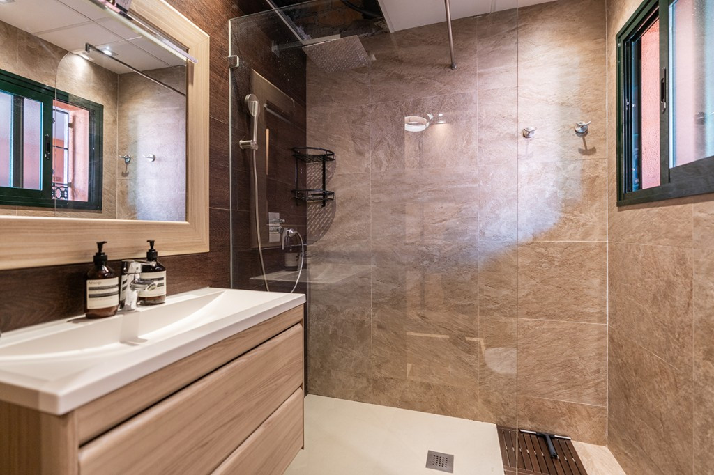 Apartment on one level in the complex El Mirador de Santa Maria Golf in Elviria in East Marbella. The apartment offers three bedrooms, two bathrooms, a fully equipped modern kitchen, a large and bright living room with access to the covered and glazed terrace. Fully refurbished and equipped with AC hot and cold, wooden floors and sold furnished. South orientation. The price includes a double underground parking space and a large storeroom. Gated complex with three pools and gardens just next to the Santa María Golf Course and within a short drive to all amenities as well as the beach. The centre of Marbella and shopping centres are a 10 minutes drive away.