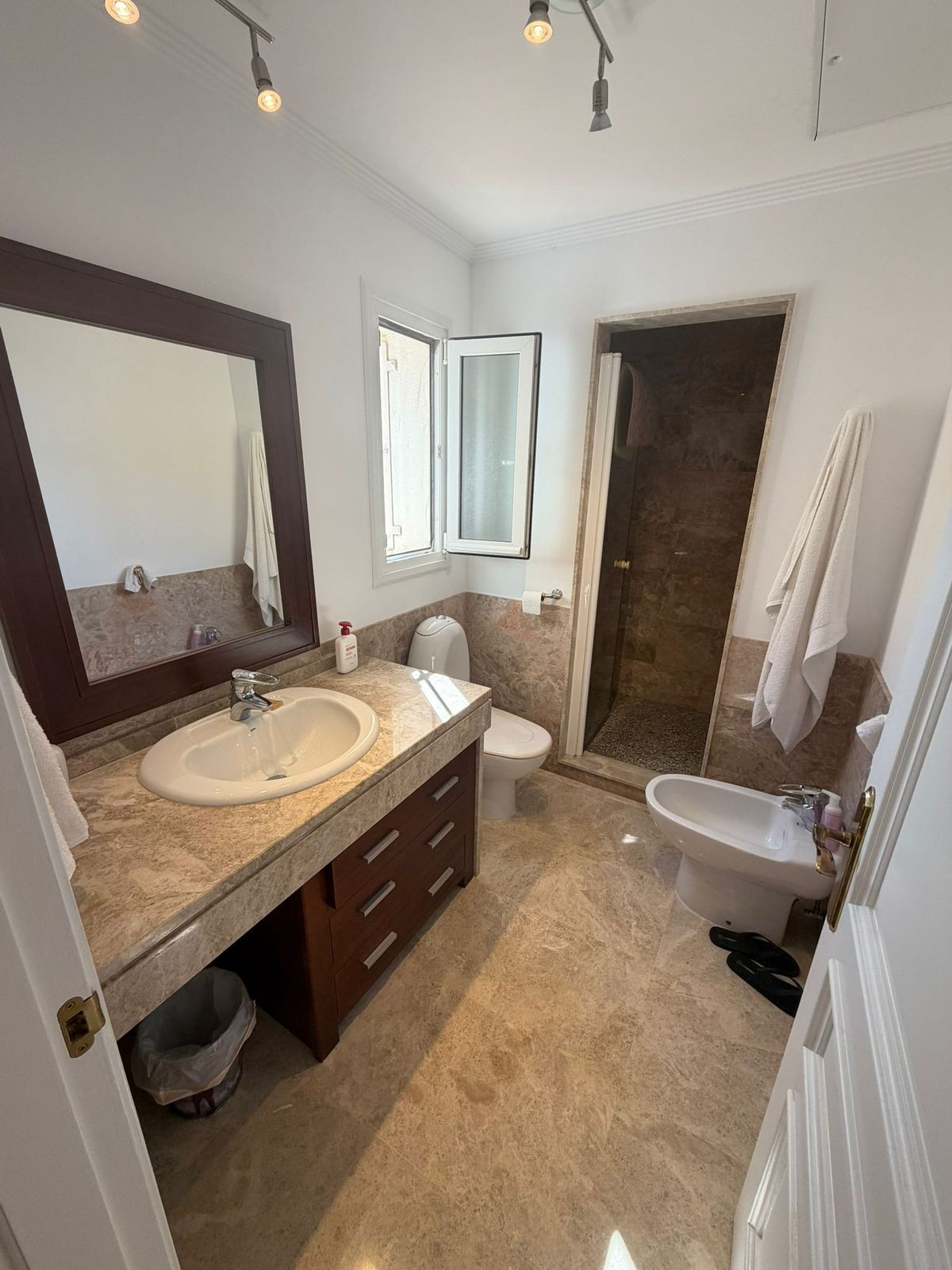 Presented in excellent condition, the home is ready for immediate use. The bright living spaces connect to a private terrace, creating an ideal outdoor area for relaxing or entertaining. Sea views can be enjoyed from the bedrooms, adding extra appeal. Air conditioning with hot and cold settings ensures year-round comfort.