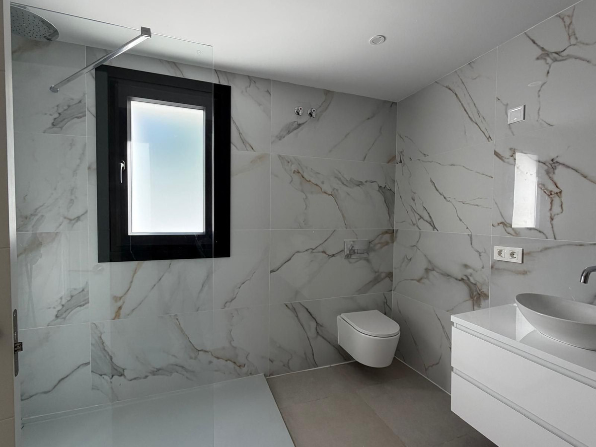 The property includes three spacious bedrooms, all en-suite, and a total of five bathrooms, ensuring comfort and privacy for all. Every room is equipped with independent air conditioning, providing year-round climate control.