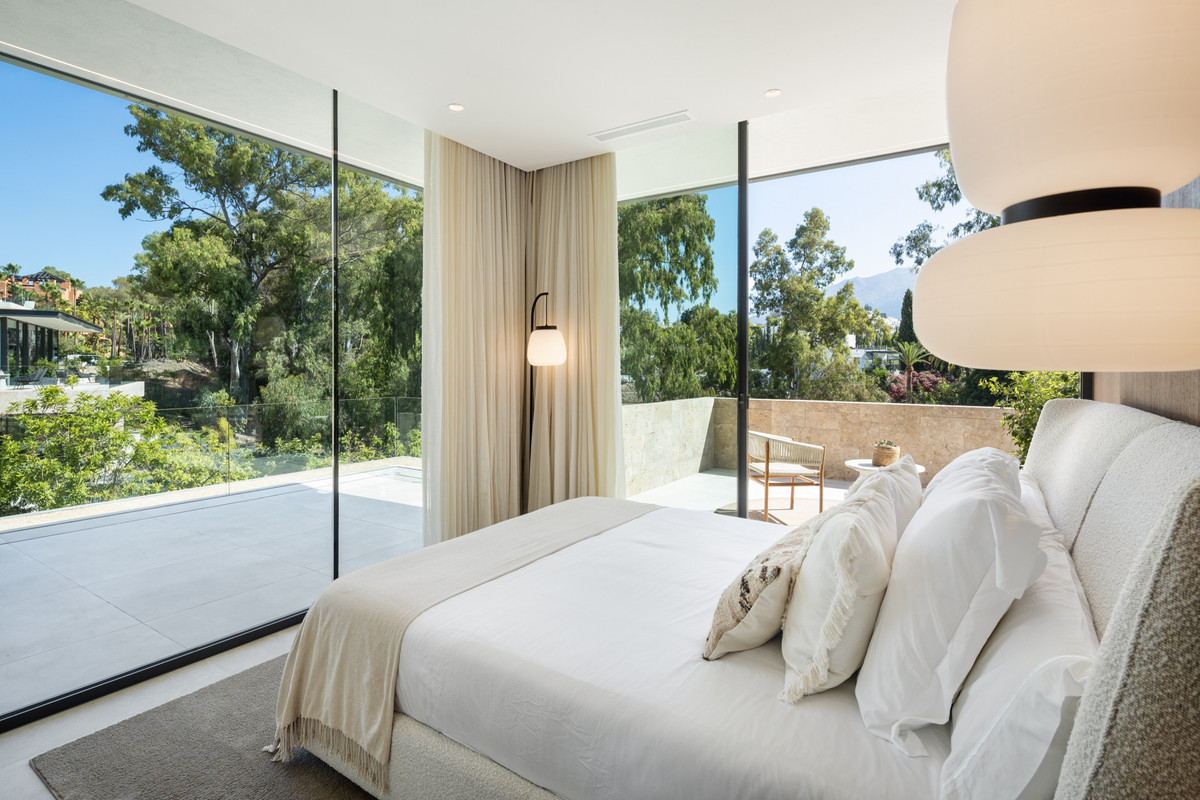 Nestled in the prestigious La Cerquilla community of Nueva Andalucía, this contemporary villa epitomizes luxury living. Masterfully crafted with organic materials, it seamlessly blends with its natural surroundings.