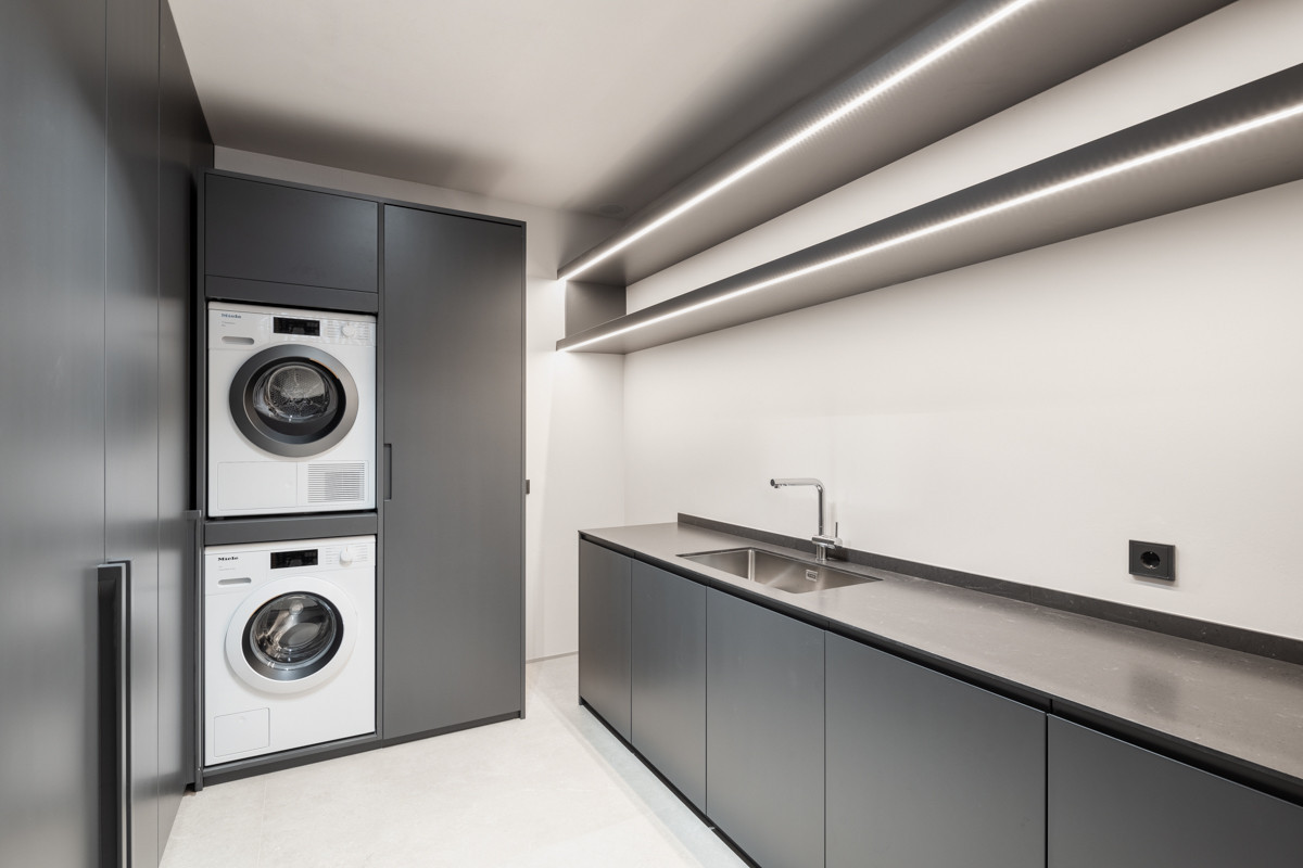 The lower level reveals a dedicated space for leisure and relaxation. A home cinema promises a cinematic experience in luxurious surroundings, while the adjacent bar area is perfect for social gatherings. The pièce de résistance is the spa area, which includes a fully equipped gym, a sauna, and a steam room—a haven of relaxation.