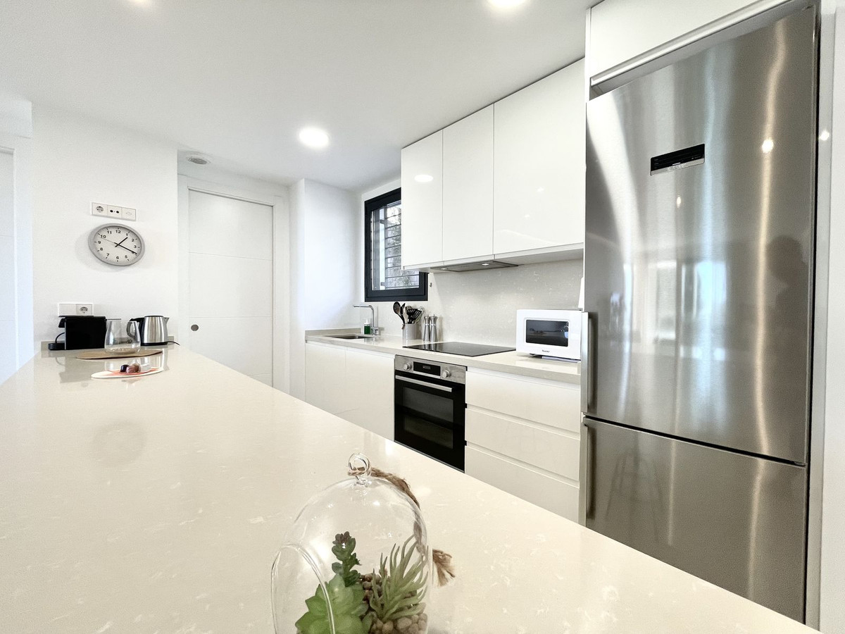 Luxury 3 bedroom apartment in the Middel Views Urbanization, beautifully landscape on the coast of Costa del Sol. In Norwegian, the six letters making up the word Middel are used to refer to the Mediterranean. A community is comprising of 45 homes. From the large terrace and the roof-top terrace you will enjoy striking panoramic views of the horizon over the sea and its fragrance will slip in through your windows. Located in Fuengirola/ Carvajal just minutes away from beautiful beach, restaurants, shops, exclusive beach clubs, train station and El Higueron luxury resort style development. The exclusive Urbanization has 2 large swimming pools with salt water chlorination, state the art gymnasium, sauna, solarium area, communal vegetable garden. There is a covered car parking and spacious storage room included, The lounges and bedrooms are sea-facing with a spacious terrace that is protected with the glass enclosure. This space is ideal for organizing get-togethers with friends or enjoying some time relaxing opposite the Mediterranean. Flooring in the hall, living rooms, bedrooms and passageways is in porcelain stoneware, kitchen equipped with upscale appliances • Induction hob. • Extractor fan.• Electrical oven. • Refrigerator.• Dishwasher and washing machine. • Compact quartz worktop.• Compact quartz backsplash.• Sink fitted with a mono mixer tap. All bathrooms are fitted with mono mixer taps, mirrors and glazed porcelain bathroom suites in a contemporary white design. The main bathroom will come with a glazed washbasin and vanity unit and a shower tray with screen and mono mixer faucet. All the terraces come with a water inlet and drainage system, they will also have lighting and a power and television socket.