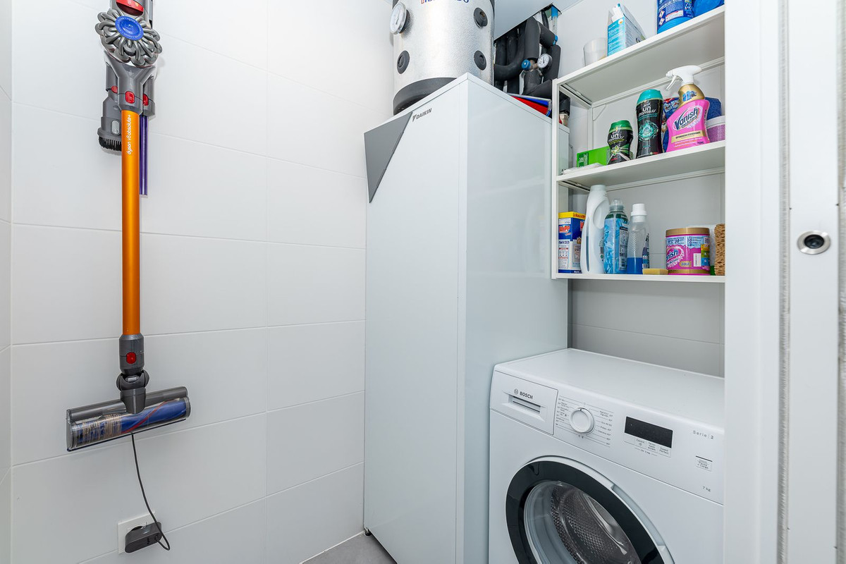 The property includes three bedrooms, two modern bathrooms with showers, built-in wardrobes, and a practical laundry/storage room, plus access to communal areas.