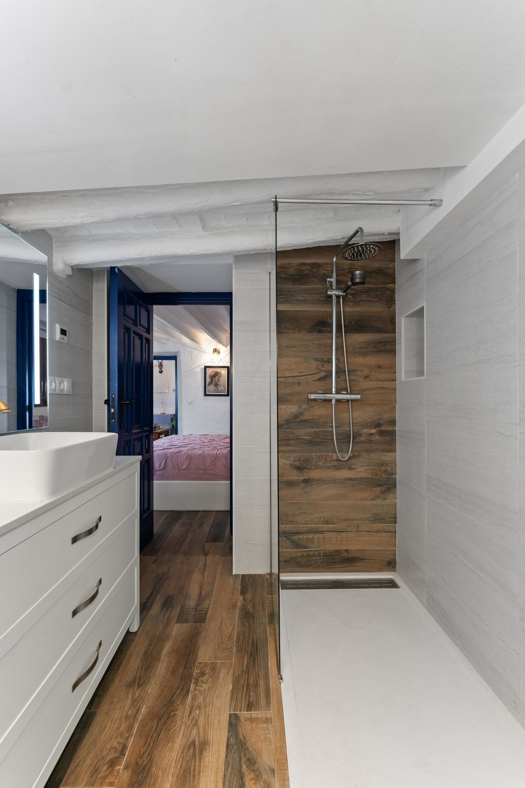 The main floor features a living-dining room connected to a functional kitchen and a private light well that provides natural clarity to the bedroom on this level. This room is equipped with an en-suite bathroom and fitted wardrobes, offering a complete living solution on the ground floor. The layout perfectly separates the resting areas from the social zones, creating a superior and versatile living experience.