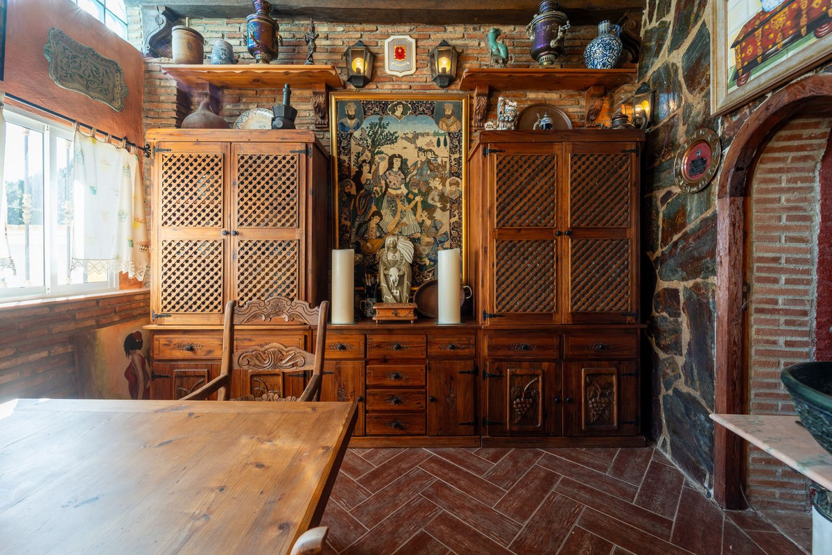 Upon arrival, the main entrance is framed by two spacious garages and leads to a charming private terrace designed in the style of a traditional Andalusian courtyard. Surrounded by colourful flower pots and authentic Granada ceramics, this peaceful space invites you to relax and enjoy the tranquil atmosphere that defines this unique residence. A welcoming porch supported by elegant columns leads you inside, revealing the character and charm of the villa.