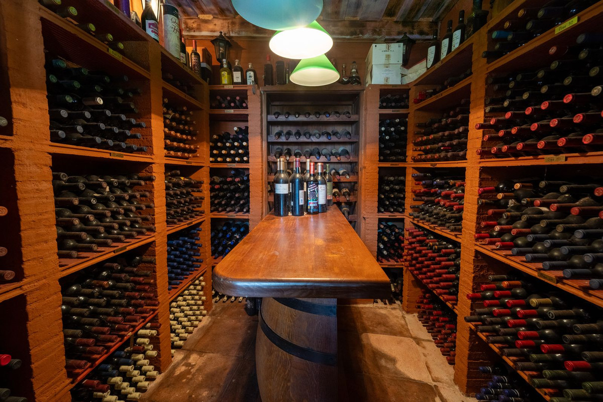 This level also features a large living room with a library and a dining area that comfortably accommodates your guests around a solid wood dining table, making it perfect for hosting memorable gatherings. From here, you can access a beautiful private wine cellar, an ideal feature for wine enthusiasts.