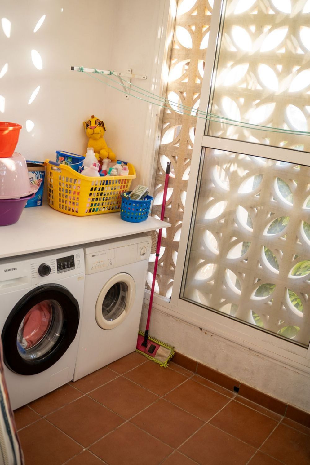 Garage for 3 cars and barbecue area.