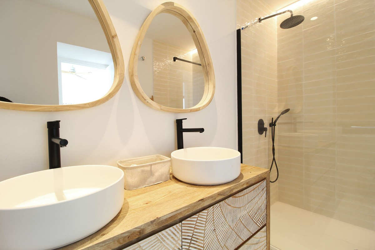 Exceptional villa situated front line beach in the highly desirable and gated community of Casasola, Guadalmina Baja. This recently renovated south-facing property enjoys breathtaking panoramic Mediterranean views with both Africa and Gibraltar in the distance. The property sits on a 2,300m2 plot and is both contemporary and Ibizan in style. The house has a sensible distribution, constructed around two central courtyards that allow light to flow throughout the property. The living room is divided into two separate areas with a cosy sitting room with a fireplace off the main section. This then leads to the dining area that has comfortable seating for at least 10 guests. Both the living and dining areas access the huge covered terrace which in turn leads out to the expansive gardens and pool area. The stunning "L" shaped kitchen has been well thought through and includes Siemens appliances. There is also a separate laundry room off the kitchen. The ground level of the property has six bedrooms suites, two of which have direct access to the gardens and pool area. Furthermore, there are two staff bedrooms at the rear of the property. The upper level consists of the master suite, twin bathrooms, a host of wardrobe space, plus a solarium from which you can enjoy the views and the sound of the waves crashing on the shore. The community has 24h security guards and is located just a short drive from San Pedro and Puerto Banus.
