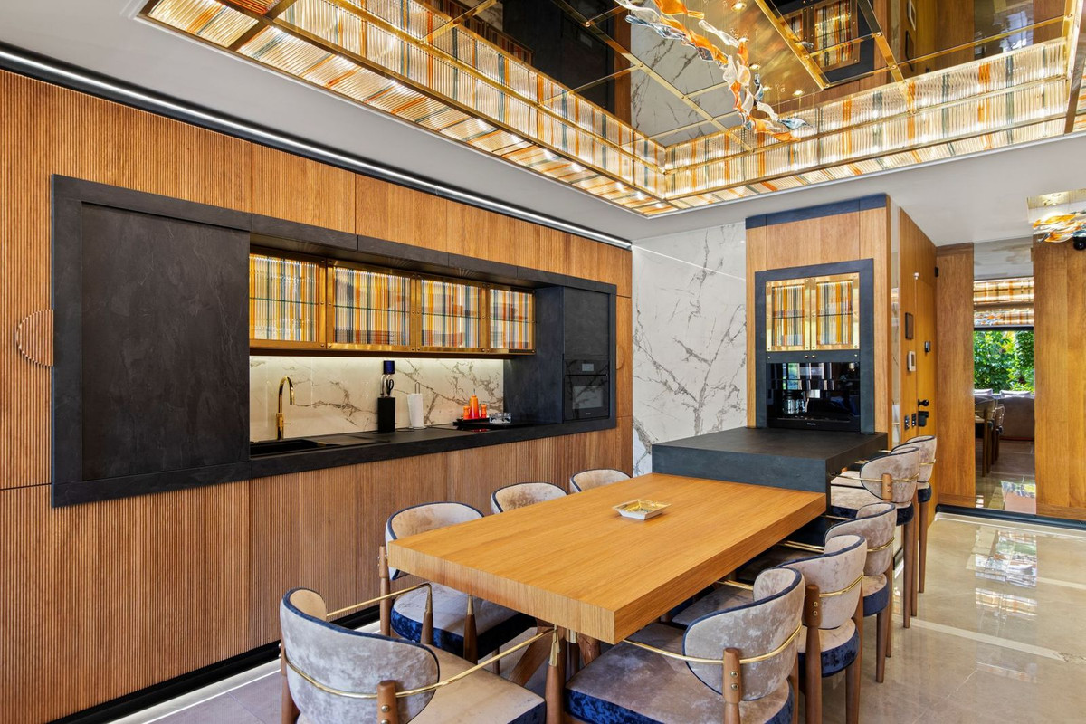 The property has undergone a full renovation of the highest standard, with a bespoke interior design project where every element has been crafted to order. Natural leathers, silks and fine woods come together alongside the work of specialist artisans, with hand-blown glass decorations and one-of-a-kind pieces throughout. The result is a singular residence with no real equivalent on the market today.