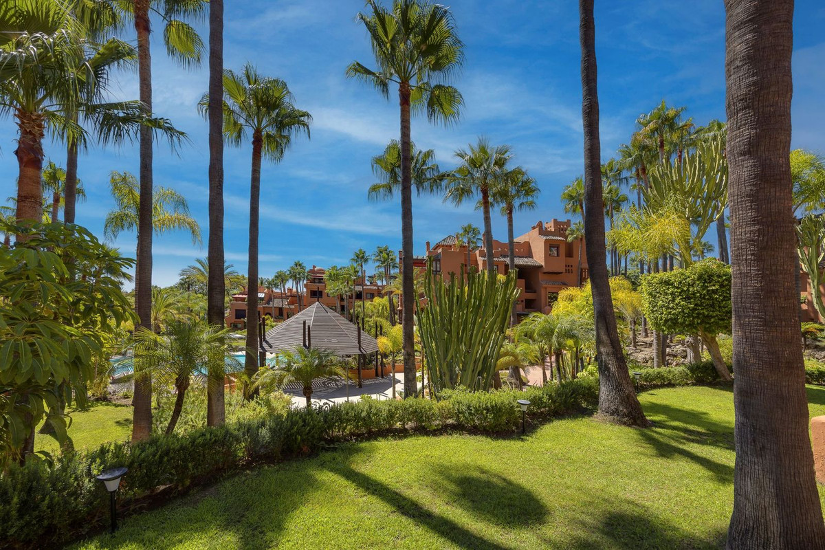 A ground floor residence in one of the most exclusive gated communities in the Puerto Banús area, with round-the-clock security, lush tropical gardens and a pool worthy of a five-star resort.