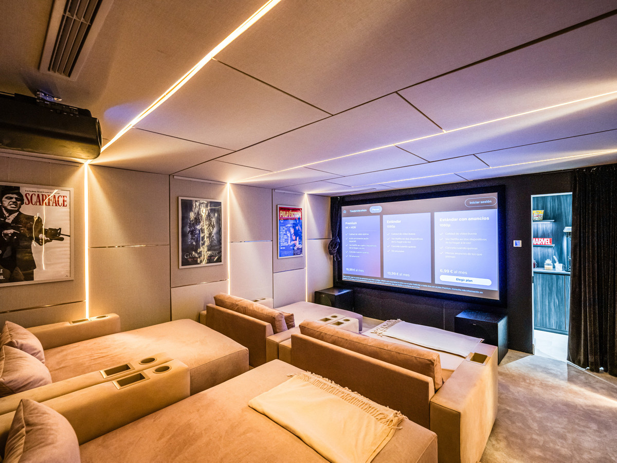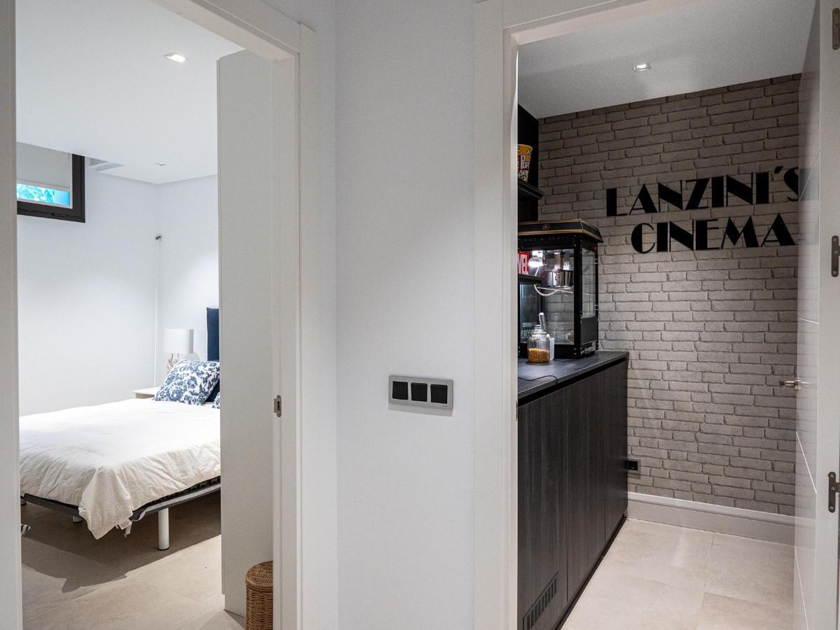The villa also includes a private cinema, Technogym fitness space and a billiards room for entertainment. A SONOS sound system runs throughout the home and a garage with space for two cars adds convenience. This fully furnished villa is a rare opportunity to own a luxury home in Los Flamingos close to golf, beaches and top restaurants.
