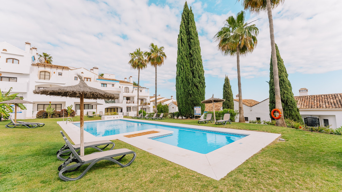 Récemment rénovée, cette maison de ville allie des éléments architecturaux andalous traditionnels à des finitions intérieures contemporaines. Le niveau principal comprend une cuisine ouverte sur un séjour, avec des baies vitrées coulissantes donnant directement sur la terrasse. La cuisine est équipée d'appareils Siemens et un parquet en chêne habille les pièces principales. La maison dispose de trois chambres et trois salles de bains réparties sur plusieurs niveaux afin de préserver l'intimité des espaces de vie et de nuit. La climatisation est installée dans toute la maison. Un garage privatif avec espace de rangement à l'arrière est inclus.