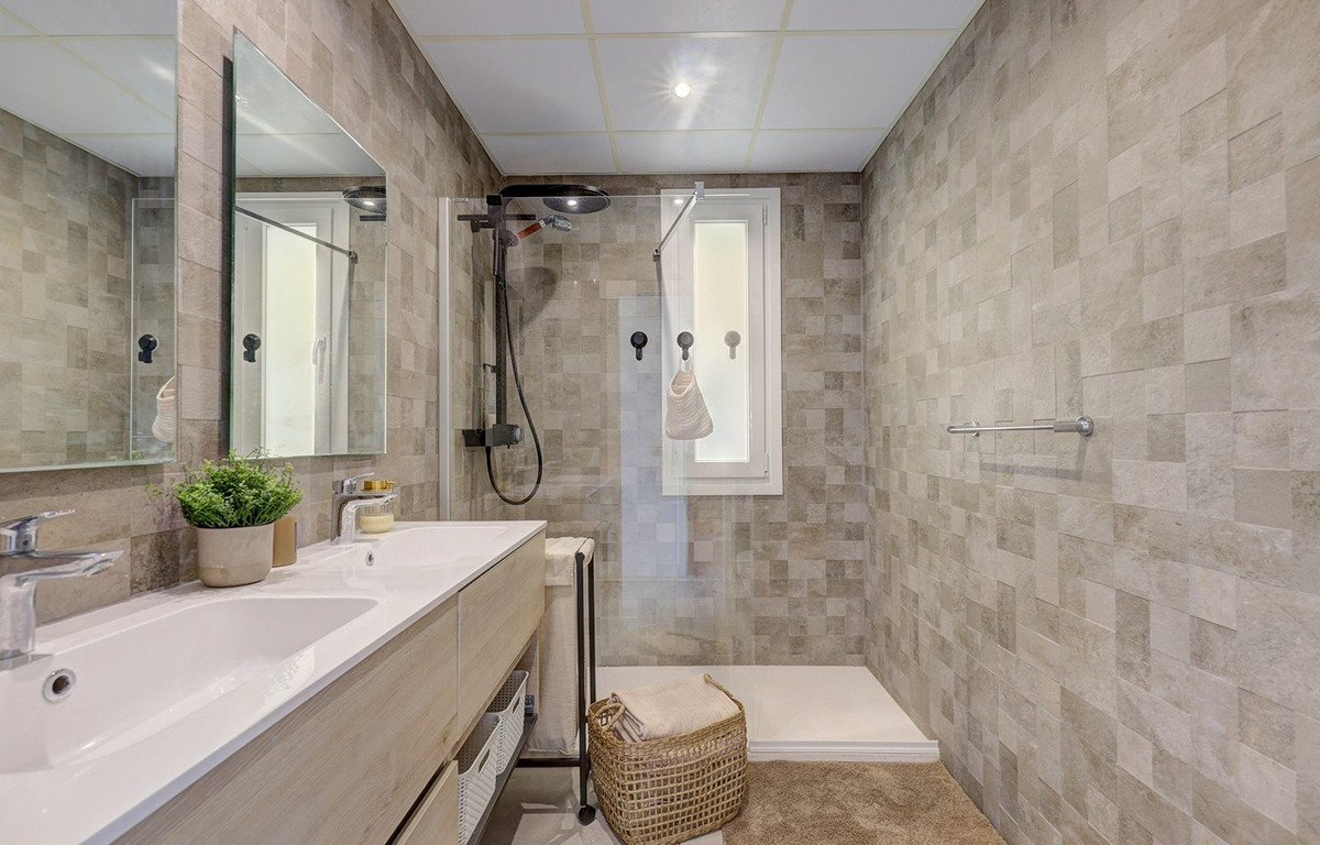 Ce superbe appartement moderne avec jardin privatif offre un espace de vie ouvert et élégant, comprenant un salon et une salle à manger, ainsi qu'une cuisine entièrement équipée avec des appareils haut de gamme SIEMENS. L'espace de vie se prolonge harmonieusement sur une terrasse privative, créant un cadre idéal pour profiter pleinement de l'extérieur, tandis que le jardin privatif offre un espace extérieur supplémentaire pour savourer pleinement le style de vie méditerranéen.