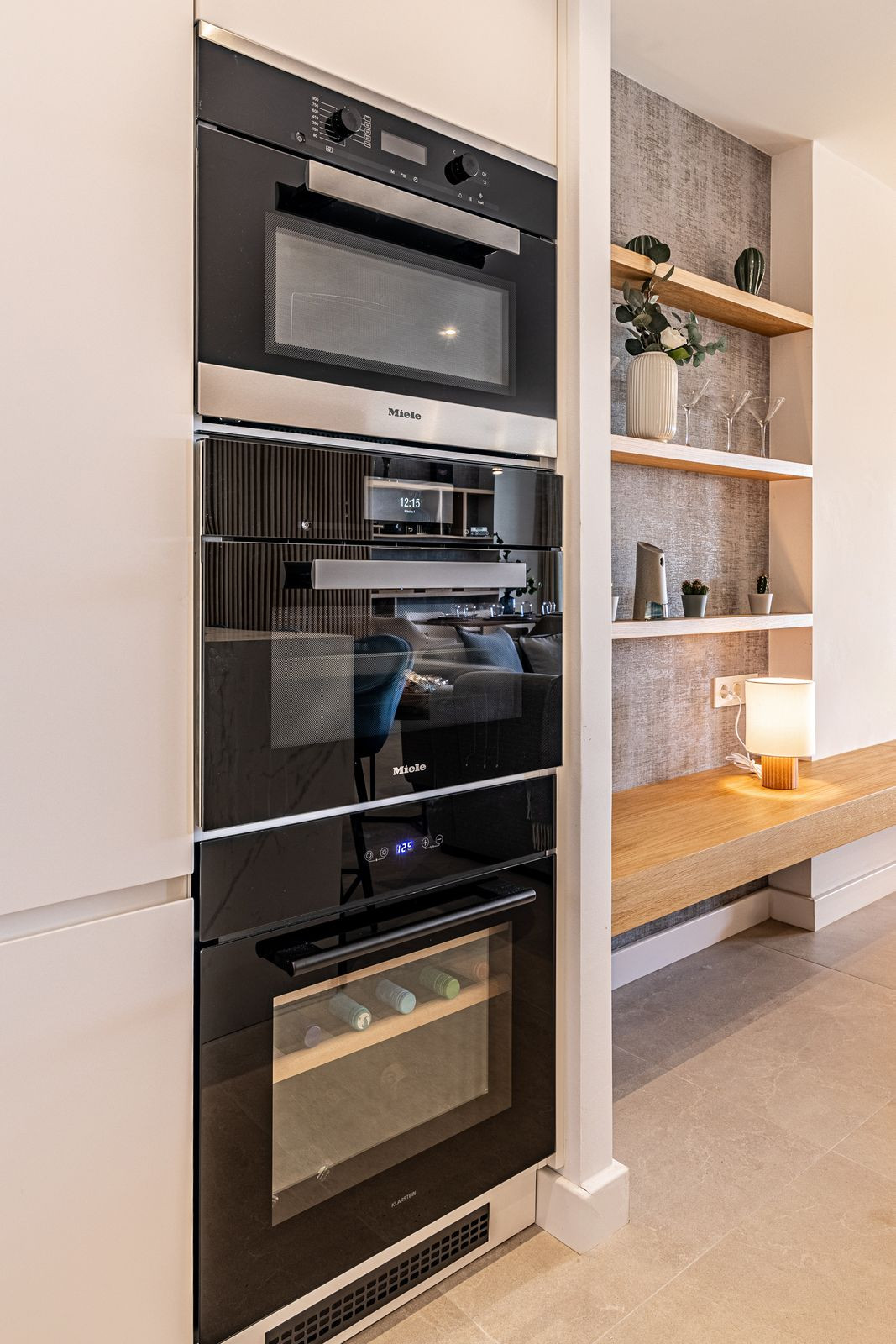 Cuisine ouverte entièrement équipée d'appareils Miele. Le confort et l'élégance de la résidence sont également assurés par le mobilier neuf, la décoration raffinée et les boiseries sur mesure d'une qualité exceptionnelle.