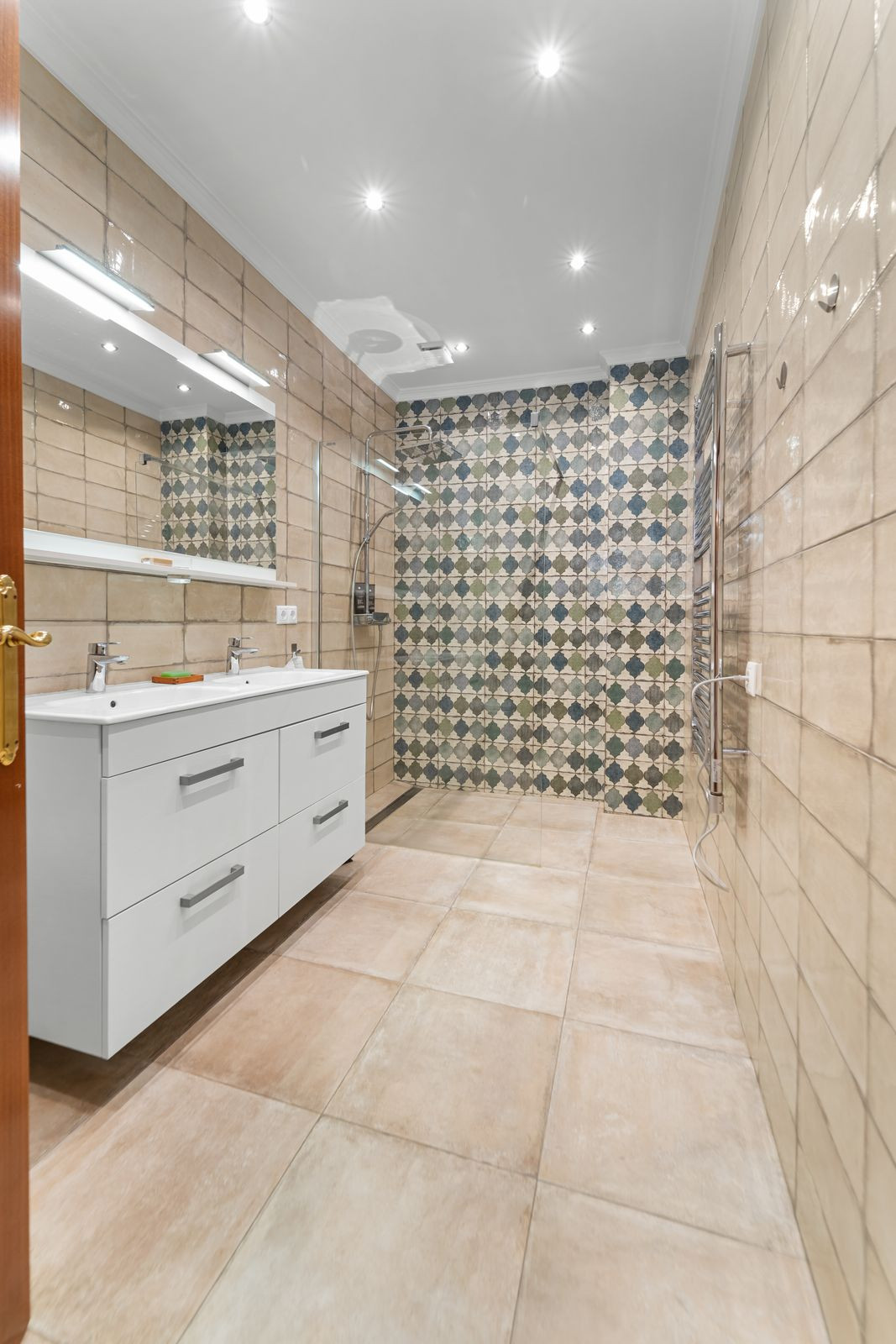 Le niveau inférieur abrite quatre chambres spacieuses, dont une avec accès direct au jardin et à la piscine, tandis que les autres pièces sont tout aussi lumineuses et bien proportionnées.