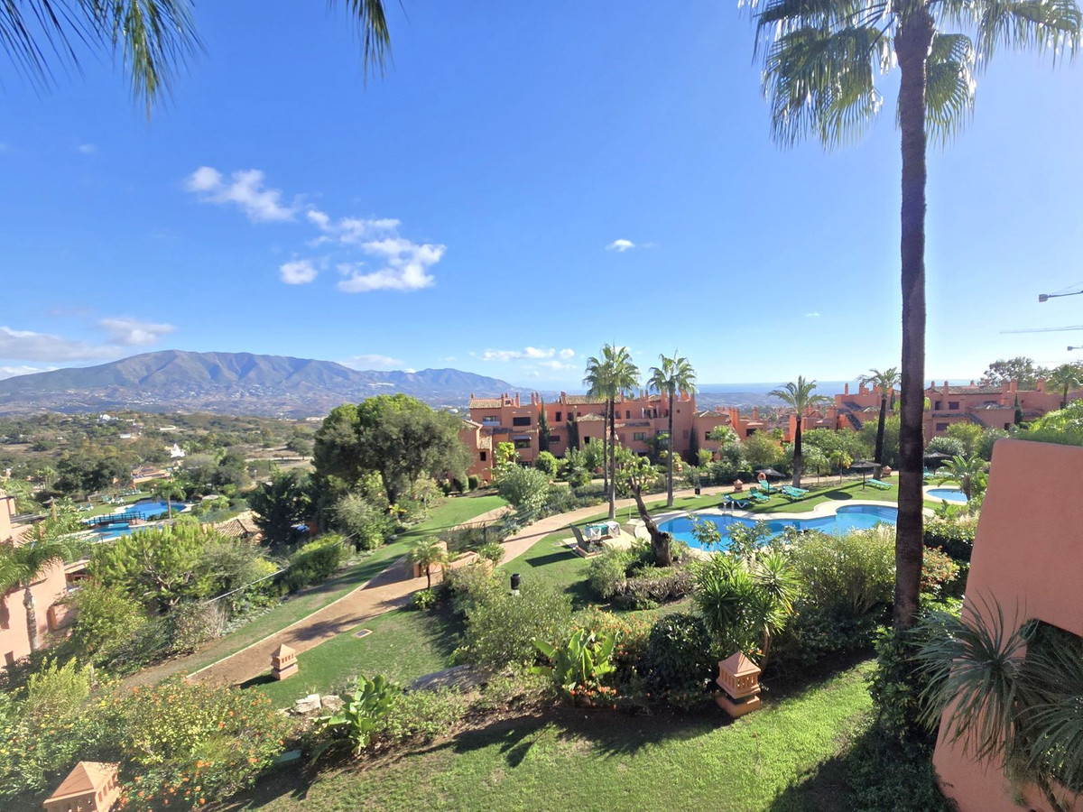 Spacieux appartement de 2 chambres au premier étage, donnant sur l'une des piscines et offrant une vue imprenable sur la mer et la montagne, au sein d'un luxueux complexe de golf situé dans le quartier exclusif de La Mairena, sur les collines d'Elviria, une région d'une beauté naturelle exceptionnelle protégée par l'UNESCO. Cet appartement spacieux est idéal comme résidence principale, pied-à-terre de vacances de luxe ou investissement locatif (la location saisonnière est autorisée dans le complexe). Le salon lumineux et spacieux s'ouvre sur une grande terrasse partiellement couverte, offrant une vue sur la mer et sur les sommets enneigés de la Sierra Nevada. L'appartement comprend également une cuisine semi-ouverte entièrement équipée, une buanderie attenante et deux grandes chambres avec de grands placards intégrés. La chambre principale bénéficie d'une luxueuse salle de bains privative avec baignoire balnéo et douche à l'italienne. Le complexe comprend de vastes jardins tropicaux avec 6 piscines (dont une chauffée) et propose également des courts de tennis et de padel, une salle de sport, un spa et un parcours de golf privé de 9 trous, entièrement gratuit pour les résidents. Un bar-restaurant convivial est situé dans le club-house. Un garage privé et un cellier sont également à disposition. Climatisation réversible neuve avec système de zones de climatisation, sols et salles de bains en marbre crème de luxe, stores électriques, moustiquaires et système domotique… À voir absolument !