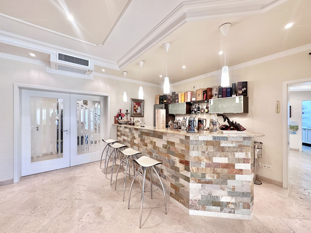 La villa se compose de deux étages, un total de 6 chambres et 5 salles de bains, il y a une buanderie, un dressing, plusieurs buanderies, un grand salon avec cheminée, une salle à manger séparée avec accès à la terrasse, un salon avec un comptoir de bar et un hall d'entrée.