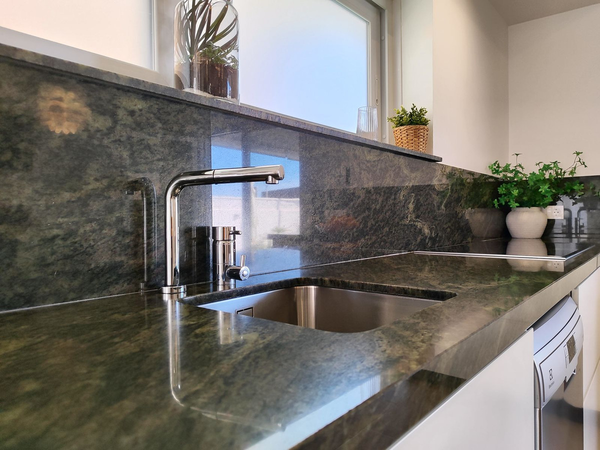 — Cuisine spacieuse avec buanderie et espace de rangement séparés