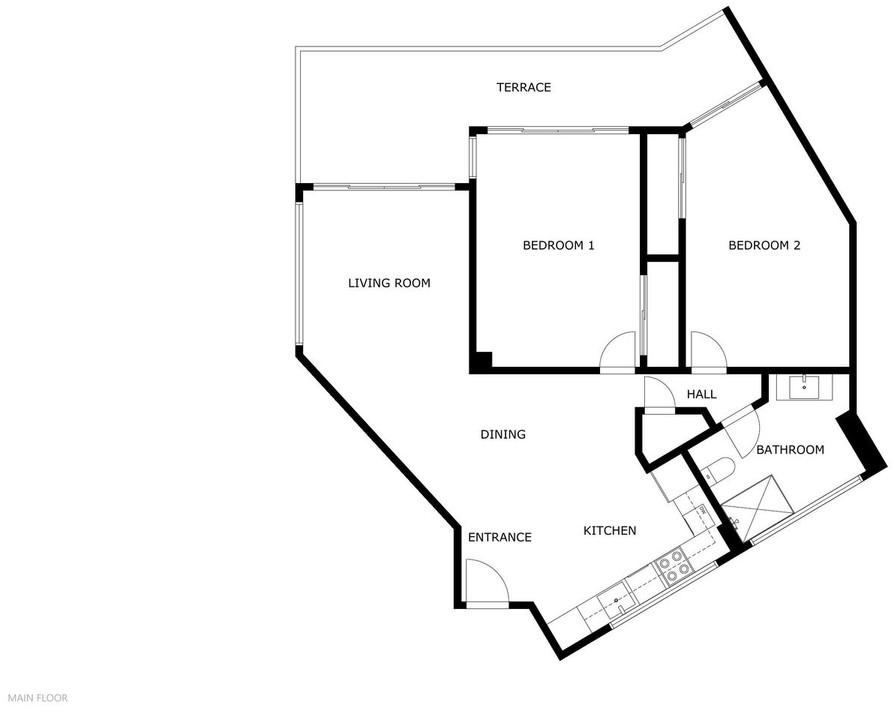Agencement : 2 chambres spacieuses, 1 salle de bains, un salon lumineux, une cuisine entièrement équipée et une terrasse privée.