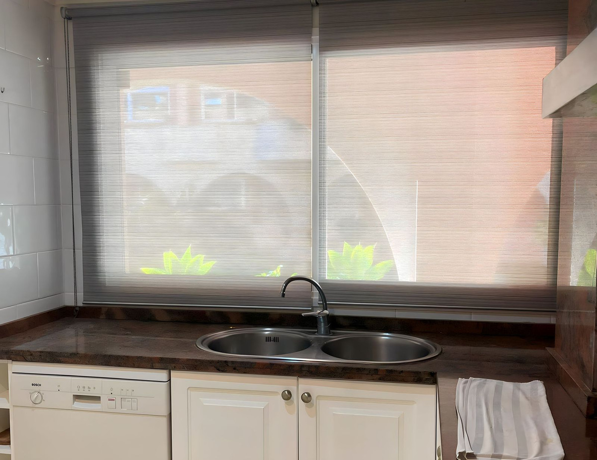 L'appartement dispose d'une cuisine séparée, spacieuse et entièrement équipée, qui s'intègre harmonieusement au vaste séjour. Le séjour et la chambre principale donnent tous deux accès à une magnifique terrasse, idéale pour profiter du climat méditerranéen et des vues panoramiques. L'orientation sud-est garantit une luminosité exceptionnelle et offre une vue imprenable sur le majestueux mont La Concha et la mer sereine.