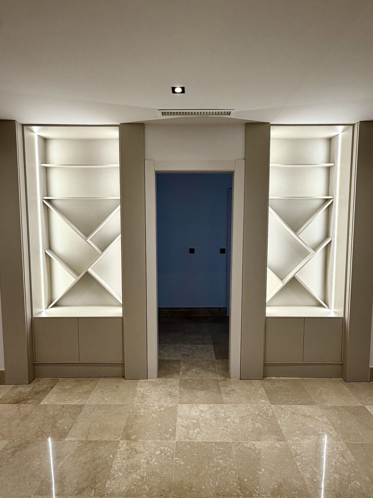 L'étage inférieur comprend deux chambres supplémentaires, deux salles de bains, une pièce polyvalente idéale comme salle de cinéma ou espace de loisirs, ainsi qu'un espace aménagé pour un sauna.