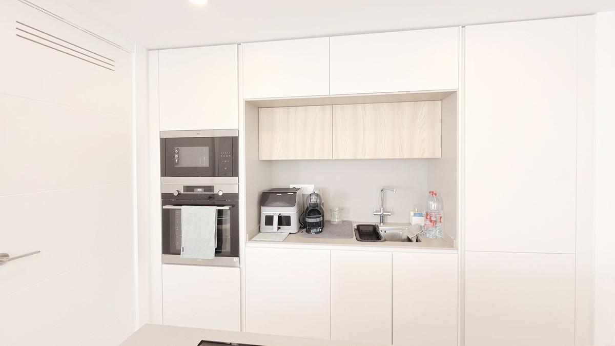 L'appartement vous accueille dans un espace de vie lumineux et ouvert, où de larges baies vitrées coulissantes laissent entrer la lumière naturelle. L'intérieur se prolonge harmonieusement sur une remarquable terrasse en L de près de 55 mètres carrés, conçue comme un véritable prolongement de l'habitation. Soigneusement aménagée en espaces distincts, elle offre un salon extérieur raffiné, un coin repas spacieux et un espace supplémentaire pour se détendre en toute intimité. De là, la vue s'ouvre sur la mer, tandis que l'aile gauche capture la présence des montagnes, créant une impression de profondeur et de perspective unique. Dominant un charmant paysage urbain de toits traditionnels, de palmiers et de larges avenues menant directement au littoral, l'atmosphère y est à la fois vivante et sereine.