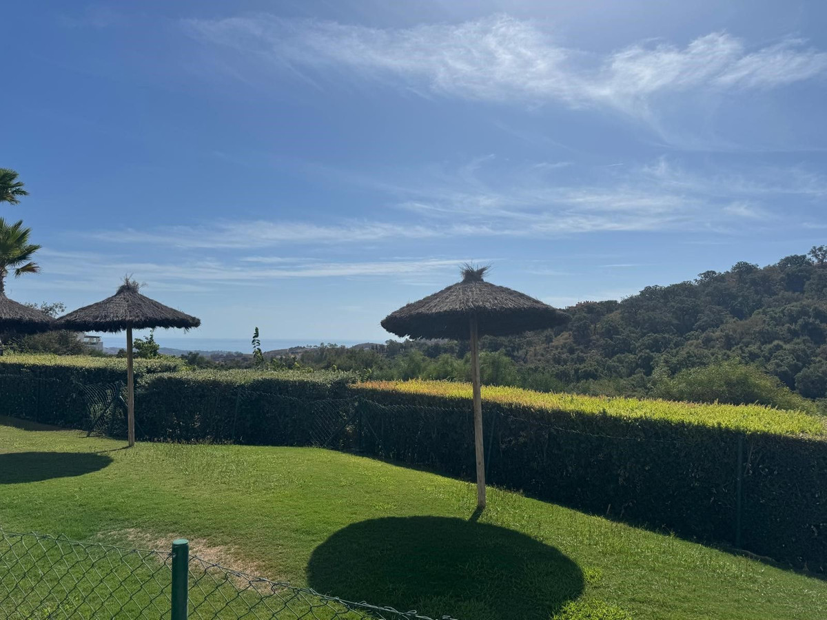 Ce superbe appartement d'angle de trois chambres, situé au rez-de-chaussée, se trouve dans la résidence La Floresta de la Mairena, un complexe résidentiel niché dans un cadre magnifique, classé réserve naturelle par l'UNESCO, à seulement 7 km de la plage d'Elviria, à l'est de Marbella. Entourée d'une forêt de chênes-lièges et offrant une vue imprenable sur la mer, la résidence bénéficie d'une atmosphère paisible et sereine, à l'écart de la circulation, tout en étant parfaitement desservie par les axes routiers menant au centre de Marbella. La Floresta de la Mairena est située à proximité de la célèbre German School et à quelques minutes à pied du golf d'El Soto. Les résidents de La Floresta de la Mairena bénéficient d'un accès gratuit au golf d'El Soto (9 trous, par 3), qui comprend également une salle de sport, un sauna, un padel et un club-house avec restaurant. À 5 minutes en voiture, vous pourrez également profiter des prestigieux golfs de La Cala (36 trous) et de Santa Maria. La résidence dispose d'une piscine pour adultes et d'un bassin pour enfants, de jardins communs et d'un parking extérieur. L'appartement comprend trois chambres, deux salles de bains, un vaste séjour avec accès direct à une terrasse couverte et un jardin privatif, ainsi qu'une cuisine moderne ouverte sur le séjour. Vue imprenable sur la forêt et la mer. Place de parking privative et appartement entièrement meublé ! À visiter absolument.
